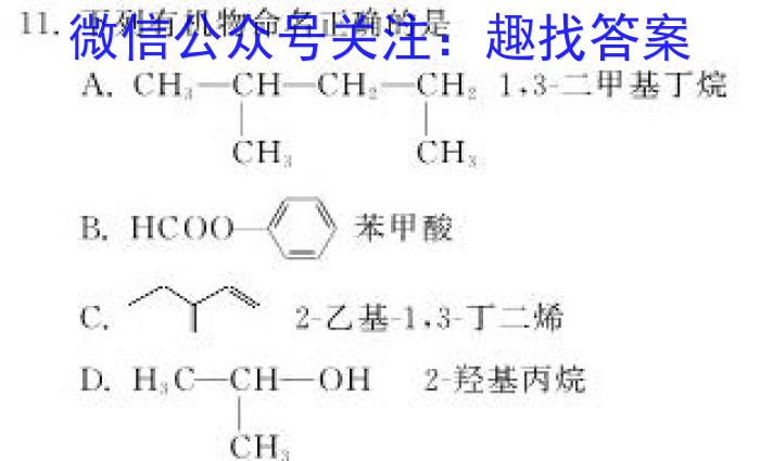 11.下列有机物命名正确的是A.CH3-CH-CH2-CH21,3-二甲基丁烷CH3CH3B.HC(苯甲酸C.2.2-乙基-1,3-丁二烯D.H3C-CH-OH2-羟基丙烷CH3