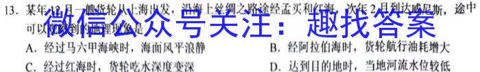 13.某年12月一艘货轮从上海出发,沿海上丝绸之路途经孟买和红海,次年2月到达威尼斯,途中可以观察到的地理现象是A.经过马六甲海峡时,海面风平浪静B.经阿拉伯海时,货轮航行油耗增大C.经过红海时,货轮吃水深度变深D.达到目的地时,当地河流水位较低