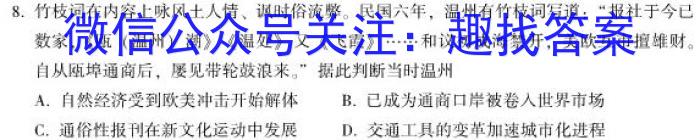 8.竹枝词在内容上咏风土人情、讽时俗流弊。民国六年,温州有竹枝词写道:“报社于今已数家,《瓯(温州)潮》《温处》又《飞霞》……和议初成海禁开,美欧互市擅雄财。自从瓯埠通商后,屡见带轮鼓浪来。”据此判断当时温州A.自然经济受到欧美冲击开始解体B.已成为通商口岸被卷入世界市场C.通俗性报刊在中发展D.交通工具的变革加速城市化进程