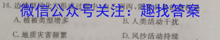 16.边墙型风化穴形成过程中,由乙到丙,需要具备的条件是A.植被类型增多B.人类活动干扰C.地质灾害频繁D.风沙活动持续(2)说明台特玛湖地区风影沙丘的形成过程。(6分)