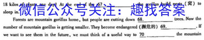 18 kilos of plants one day!At the end of the 67____, the gorillas build nests (窝) tosleep in.number of mountain gorillas is getting smaller. They become endangered (濒危的) 69.. Ifwe want to see them in the future, we must think of a useful way to 70 the mountain