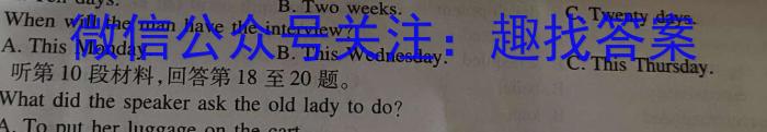 0816. How many days’sick leave can the man have per year?C. Twenty days.A. Ten days.B. Two weeks.17. When will the man have the interview?A. This Monday. B. This Wednesday. C. This Thursday.听第10段材料,回答第18至20题。