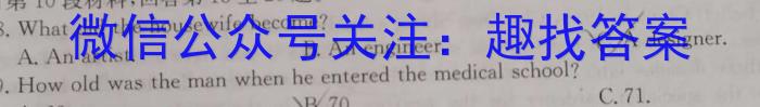 听第10段材料,回答第18至20题。18.What did the housewife become?A. An artist. B.An engineer. C.A designer.19.How old was the man when he entered the medical school?