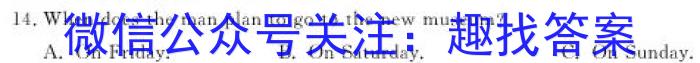 14.When does the man plan to go to the new museum?A.On Friday. B.On Saturday. C.On Sunday.