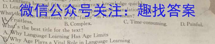 hatD. Learning in adulthood helps to acquire peak translation skills.34. What does the underlined word “futile”in Para.7 mean?A.Frrui the ss.35.Whaatss the best tiB.Complex.C. Time-consuming.t title for the text?D. Painful.A.Why Language Learning Has Age Limits