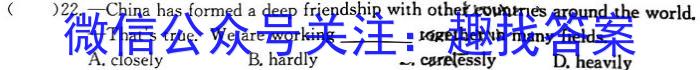( ) 22.China has formed a deep friendship with other e ount res around the world.-That’s true. We are working get her vn many fields.____A.closely B.hardly L. carelessly D.heavily