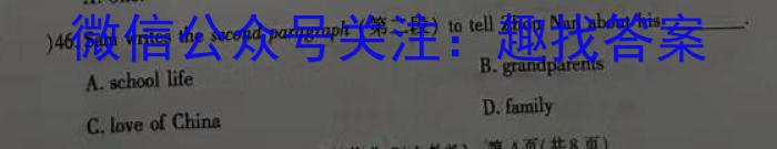 ____( ) 46. Sam writes the second para grph (第二段) to tell Zhou Nan about his .A. school lifeD. familyC. love of China第4页(共8页)B. grandparents