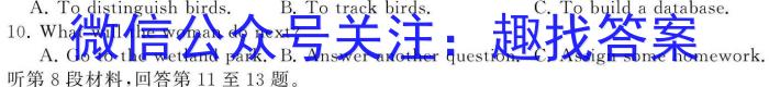 10.What will the woman do next?A.Goto the wetland park. B. Answer another question. C. Assign some homework.听第8段材料,回答第11至13题。