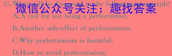 35.What will be discussed in the following paragraph?A.A call for not being a perfectionist.B.Another side-effect of perfectionism.C.Why perfectionism is harmful.D.How to avoid perfectionism.