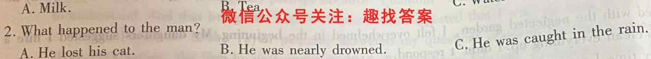 2.What happened to the man?A. He los t his cat. B.He was nearly drowned.C.He was caught in the rain.
