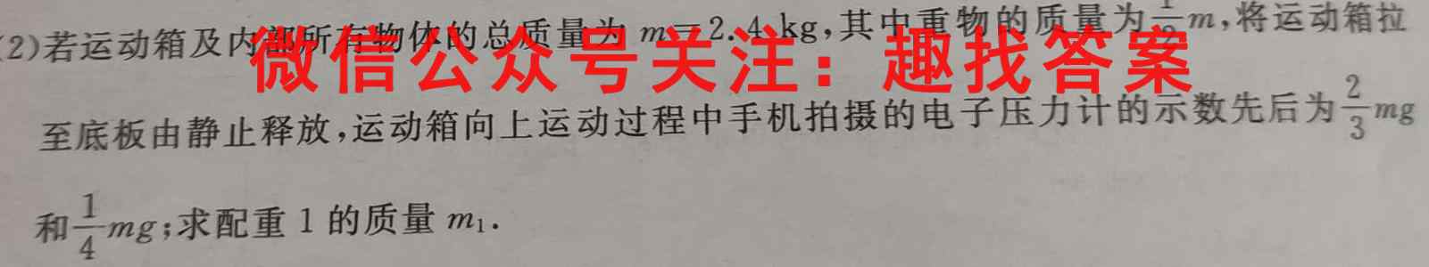 (2)若运动箱及内部所有物体的总质量为m=2.4kg,其中重物的质量为12m,将运动箱拉至底板由静止释放,运动箱向上运动过程中手机拍摄的电子压力计的示数先后为23mg和14mg;求配重1的质量m1.