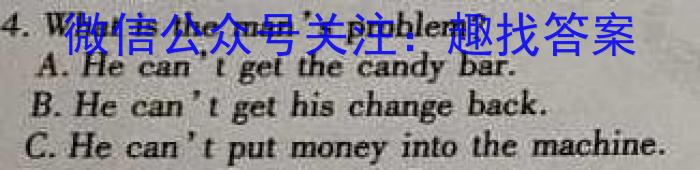 44.What is the man’s problem?A.He can’t get the candy bar.B. He can’t ge t his change back.k.C.He can’t put money into the machine.
