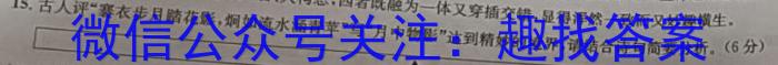 D.全篇紧扣诗题,围绕花、月、酒、人构思,四者既融为一体又穿插交错,显得浑然一致而又妙趣横生。15.古人评“赛衣步月踏花影,炯如流水涵青苹”写“月中物影”达到精妙的境界,请结合诗句简要分析。(6分)
