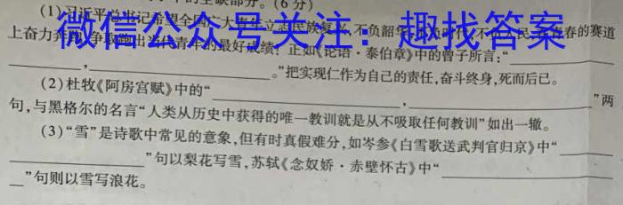 大联考·百校大联考 2023届高三第八次百校大联考试卷 新教材-L语文试卷答案,我们目前收集并整理关于大联考·百校大联考 2023届高三第八次百校大联考试卷 新教材-L语文得系列试题及其答案,更多试题答案请关注微信公众号:趣找答案/直接访问www.qzda.com(趣找答案)