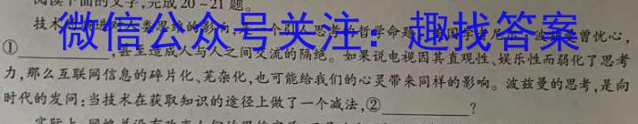 16.补写出下列句子中的空缺部分。(6分)(1)希望全国广大青年立志民族复兴,不负韶华,不负时代,不负人民,在青春的赛道上奋力奔跑,争取跑出当代青年的最好成绩!正如《论语·泰伯章》中的曾子所言:“,。”把实现仁作为自己的责任,奋斗终身,死而后已。(2)杜牧《阿房宫赋中的赋》中的“,”两句,与黑格尔的名言“人类从历史中获得的唯一教训就是从不吸取任何教训”如出一辙。(3)“雪”是诗歌中常见的意象,但有时真假难分.如岑参(白雪歌送武判官归京》中“”句以梨花写雪,苏轼《念奴娇·赤壁怀古》中“”句则以雪写浪花。阅读下面的文字,完成20-21题。技术的演进对人类思维的影响,是一个引人思考的哲学命题。美国学者尼尔·波兹曼曾忧心,①,甚至造成人与人之间交流的隔绝。如果说电视因其直观性、乐性而弱化了思考力,那么互联网信息的碎片化、芜杂化,也可能给我们的心灵带来同样的影响。波兹曼的思考,是向时代的发问:当技术在获取知识的途径上做了一个减法,②?