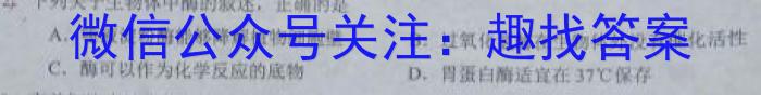 2.下列关于生物体中酶的叙述,正确的是A.唾液淀粉酶能够降解植物细胞壁B.过氧化氢酶在生物体外没有催化活性,酶可以作为化学反应的底物D.胃蛋白酶适宜在37^C保存