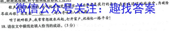 歌声是轻快飘忽的,但听起来却觉得苍凉。因为歌者是夜行的舟子,在长夜迢迢的旅途中,为破除岑寂而歌。这是最③、耐人寻味的人间天籁。听了枕畔歌声,我常常想披衣而起,打开窗户,祝福他一路平安!18.请在文中横线处填入恰当的成语。(3分)