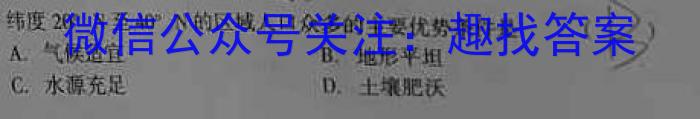 16.纬度20^N至40^N的区域人口众多的主要优势条件是BA.气候适宜B.地形平坦C.水源充足D.土壤肥沃