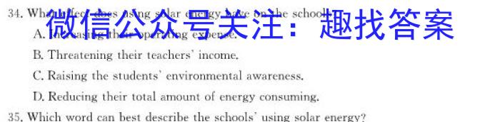 34.What effect does using solar energy have on the schools?A.Increasing their operating expense.B.7Threatening their teachers’income.C.Raising the students’ environmental awareness.D.Reducing their total amount of energy consuming.