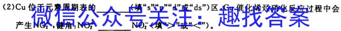 (2)Cu位于元素周期表的(填“s”“p”“d”或“区,催化烯烃硝化反应过程中会产生NO2^+,键角:NO2^+NO2^-(填“>”或“<”)。