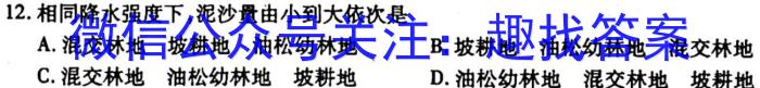 12.相同降水强度下,泥沙量由小到大依次是A.混交林地坡耕地油松幼林地B.坡耕地油松幼林地混交林地C.混交林地油松幼林地坡耕地D.油松幼林地混交林地坡耕地