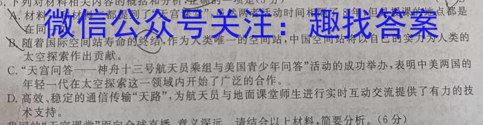 5.下列对材料相关内容的概括和分析正确的一项是(3分)材料和材料二都提到了“天官课堂”,虽然两者活动时间相隔了8年,但是授课的地点都是在同一处。B.随着国际空间站寿命的终结,作为人类唯一的空间站,中国空间站将以自己的实力为人类的随太空探索作出贡献。作出神舟十三号航天员乘组与美国青少年问答”活动的成功举办,表明中美两国的“年轻一代在太空探索这一领域内开始了广泛的合作。D年,稳定的通信传输“天路”,为航天员与地面课堂师生进行实时互动交流提供了有力的技术支持。