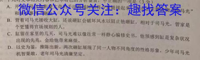6.下列对文本相关内容和艺术特色的分析鉴赏,不正确的一项是(3分)A.开头三段以电影蒙太奇的手法跨越时间将今昔链接起来,引出了主要人物“司马光”和核心事件“砸缸”。B.背着司马光接收大缸,还说砸缸会破坏风水以阻止他砸缸,相对于司马光,管家是个更懂得官场规则的人,C.缸留在家里的几天,司马光难以像往常一样静心编修史书,他预感到缸是复杂状况出现的先兆,会给他带来麻烦。D.以史为签,推陈出新,两次缸展现了同一人物不同角度的性格形象,少年司马光机智果敢,老年司马光清廉坚定。