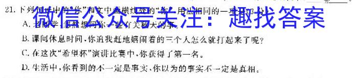 2023届高三一起考大联考(模拟二)英语答案以下是该试卷的部分内容或者是答案亦或者啥也没有,更多试题答案请关注微信公众号:趣找答案/直接访问www.qzda.com(趣找答案)