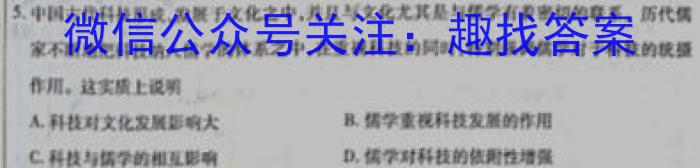 5.中国古代科技形成,发展于文化之中,并且与文化尤其是与儒学有着密切的联系。历代偶家不断地把科技纳人信学的体系之中,在重视科技的同时,特别强调偶学对于科技的统作用。这实质上说明A.科技对文化发展影响大B.儒学重视科技发展的作用C.科技与儒学的相互影响D.儒学对科技的依附性增强