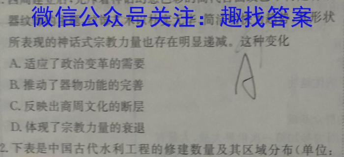 1.西周建立后,充斥着神话幻想色彩的商代兽面纹已不再是青铜器纹饰的主题,纹饰艺术以朴实无华、简洁明快为趋势,其形状所表现的神话式宗教力量也存在明显递减。这种变化A.适应了政治变革的需要B.推动了器物功能的完善C.反映出商周文化的断层D.体现了宗教力量的衰退