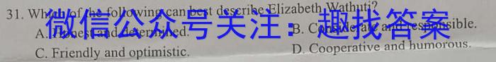31. Which of the following can best describe Elizabeth Wath uti?A. Honest and determined. B. Considerate and responsibleC. Friendly and optimistic. D.Cooperative and humorous.