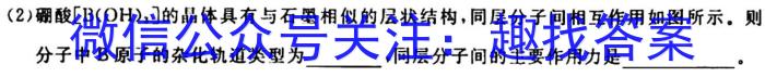 (2)硼酸[B(OH)3]的晶体具有与石墨相似的层状结构,同层分子间相互作用如图所示。则分子中B原子的杂化轨道类型为,同层分子间的主要作用力是。