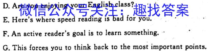 D.Are you enjoying your English class?E.Here’s where speed reading is bad for you.F.An active reader’s goal is to learn something.G.This forces you to think back to the most important points.