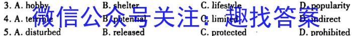 3.A.hobby B.shelter C.lifestyle D.popularity4.A.terrible B.potential C.limited D.indirect5.A.disturbed B.released C.protected D.prohibited