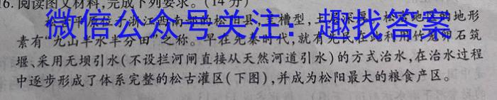 16.阅读图文材料,完成下列要求。(14分)松古平原位于浙江西南部的松阳县,呈槽型,土层深厚。松古地区的地形素有“九山半水半分田”之称。早在先秦时代,就有先民在此利用竹笼卵石筑堰、采用无坝引水(不设拦河闸直接从天然河道引水)的方式治水,在治水过程中逐成了体系完整的松古灌区(下图),并成为松阳最大的粮食产区。
