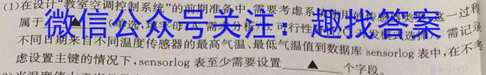 (1)在设计“教室空调控制系统”的前期准备中,需要考虑系统使用的传感器类型,这一过程属于▲(单选,填字母:A.需求分析/B.可行性分析/C.开发模式选择)。需记录不同日期来自不同温度传感器的最高气温、最低气温值到数据库sensorlog表中,在不考虑设置主键的情况下,sensorlog表至少需要设置个字段。