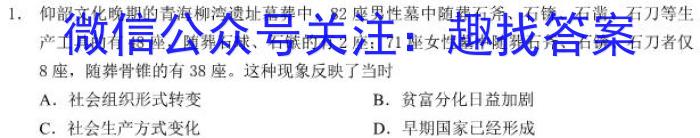 1.仰韶文化晚期的青海柳湾遗址墓葬中,82座男性墓中随葬石斧、石锛、石凿、石刀等生产工具的有48座,随葬石球、石镞的有2座;71座女性墓中随葬石斧、石锛、石刀者仅8座,随葬骨锥的有38座。这种现象反映了当时A.社会组织形式转变B.贫富分化日益加剧C.社会生产方式变化D.早期国家已经形成