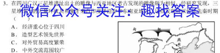 3.在四川广汉三星堆遗址出土的雕像与西亚地区考古发现的雕像颇为相似,经研究发现,三星堆出土的大量环纹贝和象牙来自印度洋沿岸和东南亚地区。这些发现可以佐证先秦时期()A.经济重心位于四川B.造型艺术领先世界C.对外贸易高度繁荣D.中外交流范围较广