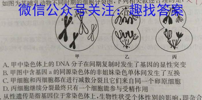A.甲中染色体上的DNA分子在间期复制时发生了基因的显性突变B.甲图中含基因a的同源染色体的非姐妹染色单体间发生了互换C.甲细胞和丙细胞都在进行减数分裂且它们来自同一个卵原细胞D.丙细胞继续分裂最终只有一个细胞能参与受精作用