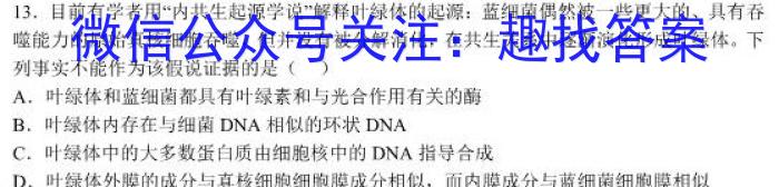 13.目前有学者用“内共生起源学说”解释叶绿体的起源:蓝细菌偶然被一些更大的、具有吞噬能力的原始真核细胞吞噬,但并没有被分解消化,在共生关系中逐渐演化形成叶绿体。下列事实不能作为该假说证据的是()A.叶绿体和蓝细菌都具有叶绿素和与光合作用有关的酶B.叶绿体内存在与细菌DNA相似的环状DNAC.叶绿体中的大多数蛋白质由细胞核中的DNA指导合成D.叶绿体外膜的成分与真核细胞细胞膜成分相似,而内膜成分与蓝细菌细胞膜相似14.下列关于有丝分裂的叙述,正确的是()