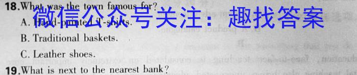 18.What was the town famous for?A.Hand-painted T-shirts.B. Traditional baskets.C. Leather shoes.19.What is next to the nearest bank?