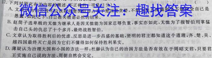 A.文章认为白公胜不应该取得楚国但却占有了楚国是贪婪,不能为他人谋福利又不能保全目己是愚蠢,如此之下,白公胜失败是必然的结果。B.赵简子选卑贱的无恤为继承人是因无恤能为国家忍辱负重,事实亦如此,无恤为了报智伯用掌猛击自己头的仇忍了十个多月,最终战胜智伯。C.文章认为取得胜利后的忧虑、反思是进一步昌盛的基础,贤明的君主都知道这个道理,齐、楚、吴、越四国最终灭亡是因为它们不懂得如何保持胜利果实。D.薄疑认为治理大国和小国的方法一样;杜赫认为自己的治国方法是否有效在于周昭文君,只要君王实施自己说的方法,周朝自然会安定。