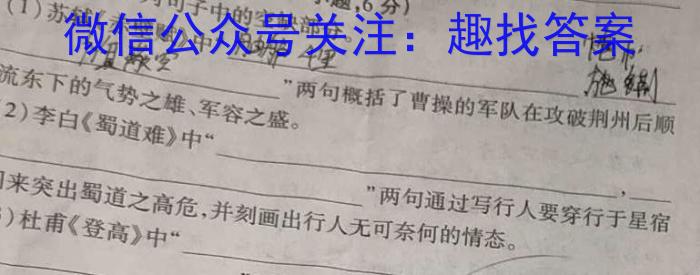 16.补写出下列句子中的空缺部分。(三)名篇名句默写(本题共1小题,6分)(1)苏轼《赤壁赋》中舳4里电巾旗蔽空施流东下的气势之雄、军容之盛。”两句概括了曹操的军队在攻破荆州后顺(2)李白《蜀道难》中“,”两句通过写行人要穿行于星宿