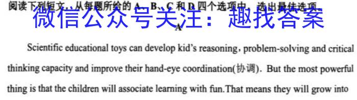 阅读下列短文,从每题所给的A、B、C和D四个选项中,选出最佳选项。AScientific educational toys can develop kid’s reasoning, problem-solving and criticalthinking capacity and improve their hand-eye coordination(协调) . But the most powerfulthing is that the children will associate learning with fun.That means they will grow into