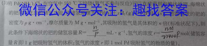 (5)将Pd(NH3)2Cl2在空气中550^C下熔烧(氧气不参与反应)可以直接得到海绵状的钯,海绵状的钯具有优良的储氢功能,其储氢原理为2Pd(s)+xH2(g)2PdH2(s)。若海绵状的钯的密度为gcm^-3,摩尔质量为Mgmol^-1,其吸附的氢气是其体积的:n倍(标准状况下),则此条件下海绵状的钯的储氢容量R=mLg^-1,,氢气的浓度40nol(储氢容量R即1g铝吸附氢气的体积;氢气的浓度即1molPd吸附氢气的物质的量)。