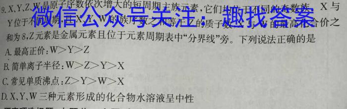 8.某多孔能材料结构如图,M、N、X、Y、Z五短期元素源子序数依次增大,电负性大于Y,下列法混的是A.基态源子的第一电离能Y>ZB.该物质中有离子键、性共价键,还存在配位键C.M、V、Z形成的化合物只能抑制水的电离D.最高价含氧酸的酸性:V>x>w