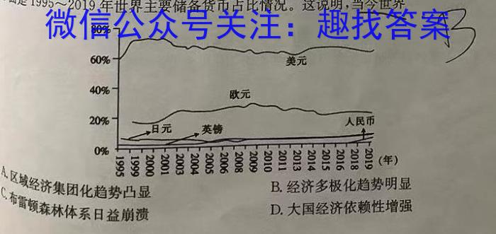 下面是1995~2019年世界主要储备货币占比情况。这说明,当今世界1995∼2019BB.经济多极化趋势明显C.区域经济集团化趋势凸显森林体系日益崩溃D.大国经济依赖性增强