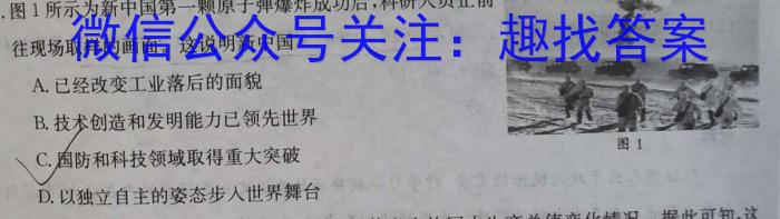 5.图1所示为新中国第一颗原子弹爆炸成功后,科研人员正前往现场取样的画面。这说明新中国A.已经改变工业落后的面貌B.技术创造和发明能力已领先世界C.国防和科技领域取得重大突破D.以独立自主的姿态步入世界舞台