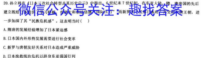 20.孙立祥在《日本三次社会转型及其历史启示》中指出,6世纪末7世纪初,在东亚大陆,隋、唐帝国的先后建立既给日本提供了学习样板,也使大和朝廷倍感“国际压力”;而新罗灭“任那日本府”并交好大唐王朝,进一步加深了其“民族危机感”。这表明当时()A.隋唐的发展经验增加了日本紧迫感B.日木国内外形势发展需要进行社会变革C.新罗与唐朝友好关系对日本造成严重威胁D.日本挽救统治危机以跻身东亚强国行列
