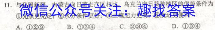 11.与我国新疆、内蒙古向日葵主产区相比,乌克兰向日葵种植区的优势条件为①光照更充足;②水分条件更好;③土壤肥力更高:④航运更便利A.①②⑧B.①②④C.②③④D.①③④